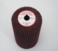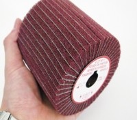 Zusammengesetzt aus Schleifgewebelamellen und Schleifvlieslamellen.
