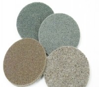 Deze dichte wielen zijn vervaardigd uit met schuurkorrels geïmpregneerde nylonvezels. Naar keuze, geringe of grote schuurkracht, maar allen zeer aanbevolen voor slijp- en afbraamwerk of vóórpolijsten van alle staalsoorten, roestvrij staal, legeringen. Om uw keuze te vereenvoudigen, is naargelang de schuurkracht, een klassering gegeven van boven naar beneden. Boven = de schuurkrachtigste wielen, beneden = de minder schuurkrachtige wielen.