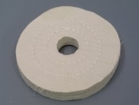 Samengestikte katoenen schijven vormen een polijstwiel. Meerdere concentrische stiknaden zorgen voor een goede houding van het wiel.